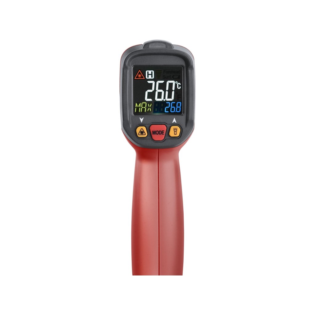 Měření bezkontaktním teploměrem je velmi rychlé a snadné a lze tak zjišťovat teplotu objektů, u kterých to není možné provést kontaktním způsobem, např. pohybujících se objektů (rotující hřídele nebo výrobků na dopravním pásu), dále vodičů pod napětím, potravin, kapalin a předmětů jinak těžce měřitelných nebo špatně přístupných a vzdálených.- možnost kontaktního měření sondou od -50°C do 800°C (sonda sama má rozsah měření až 1000°C)
