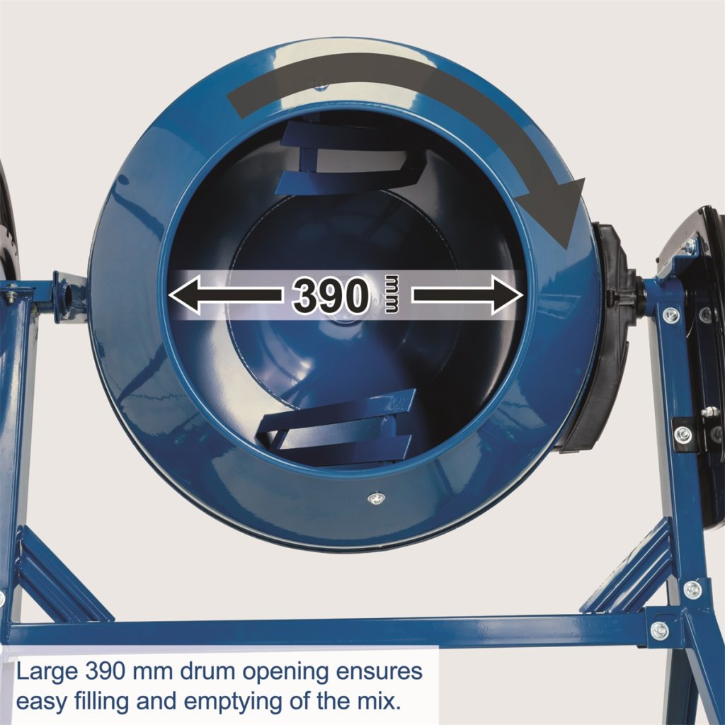 Základem je objemný buben, jehož velikost 180 l je dostatečně velká i pro profesionální aplikace. Buben MIX 180 má design lopatek eliminující nepromíchané oblasti materiálu a velký průměr, aby se zachovala co největší kapacita i při jeho naklonění v pracovní poloze. Aby odolal velkému zatížení, má speciálně vyztužené dno, které je přesně roboticky navařeno na buben. Hřídel není uložena v tenkých, často jen 2 mm silných plechových profilech, jak je v této kategorii zvykem, ale je vedena na dvou ložiskách uložených v bezešvém pouzdru z oceli silné 5 mm. Toto řešení naprosto zásadně ovlivňuje životnost celého stroje. Silný motor nemá problém ani s rozběhem plné míchačky. Má unikátní konstrukci - jednak je to systém dvojitého chlazení, který eliminuje možnost přehřátí motoru a jednak je to systém jeho uložení v odolném pouzdru, které obsahuje labyrint kanálků, nedovolujících, aby se voda dostala k motoru. Spojení motoru a bubnu je s ohledem na bezpečnost pečlivě zakrytované. Veškeré elektrické obvody mají dvojitou izolaci, zásadní pro vaše bezpečí při práci. Ovládací kolo má velký průměr a bohaté rozmezí aretace bubnu. Míchačka se tak velmi snadno ovládá. Hlavní části stroje jsou složené a tak je stroj velmi jednoduché sestavit.