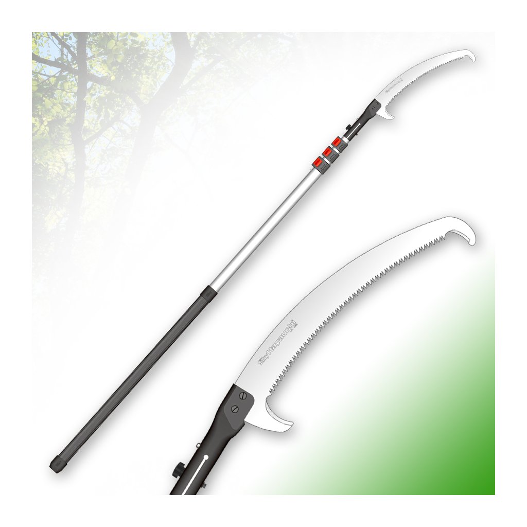 Všechny pily Silky s teleskopickou násadou mají pilový plát vyroben stejnou technologií jako menší pily. Teleskopická násada není kruhového průřezu, ale oválného. Tím se zásadním způsobem zvyšuje tuhost celého celku. Jednotlivé segmenty jsou vyrobeny z velmi pevné, ale lehké slitiny duralu a v dolní úchopové části je pila opatřena perfektní neklouzavou rukojetí ze speciální pryže – GOM. Jednotlivé výsuvné sekce jsou opatřeny promyšleným a lehce ovladatelným zámkem, který je dále zesílen speciálními svorkami. Díky tomuto důmyslnému systému se i plně vysunutá pila na rozhraní jednotlivých sekcí „neviklá“. Můžete tak pohodlně a s výbornou kontrolou pily, řezat i ve výškách dosahujících 8 metrů (Hayauchi).• pila určená hlavně pro profesionální využití ve velmi náročných podmínkách
