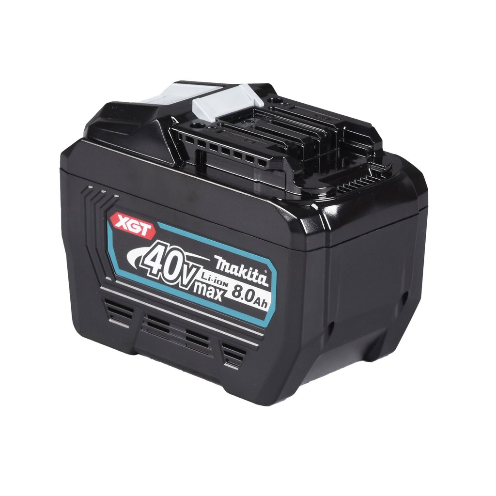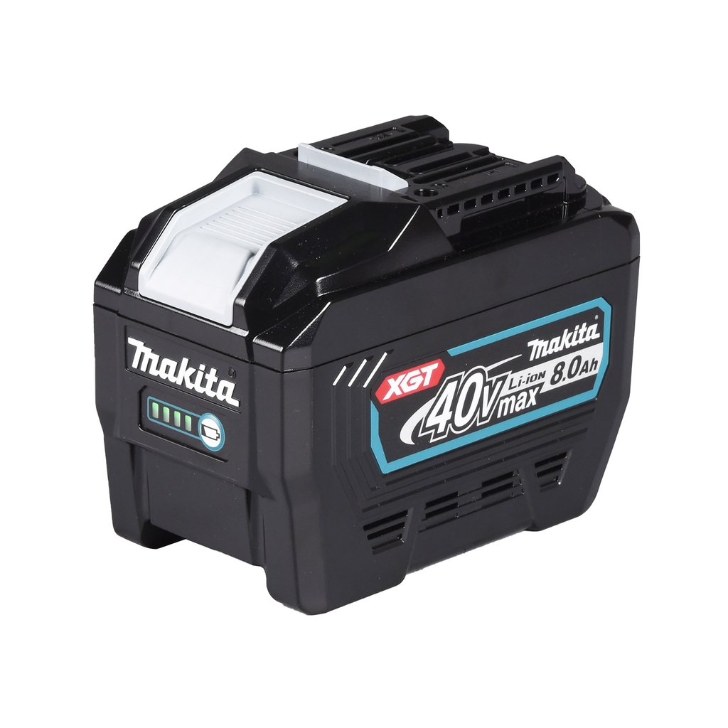 - Baterie XGT jsou speciálně navrženy pro náročné použití na stavbách a splňují normu ochrany IP64. Digitální komunikace mezi baterií a strojem pro optimální výkon. Určeno pro stroje, které jsou často používány v nepřetržitém provozu. Zvýšená odolnost proti vodě a pádu díky robustnějšímu krytu a třem vnitřním ochranným vrstvám. Indikátor stavu baterie: Čtyři zelené LED s dotazovacím tlačítkem.