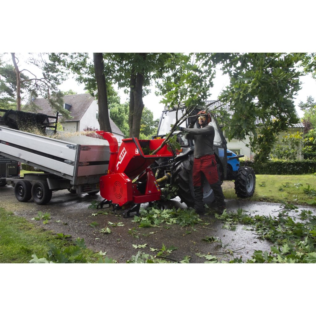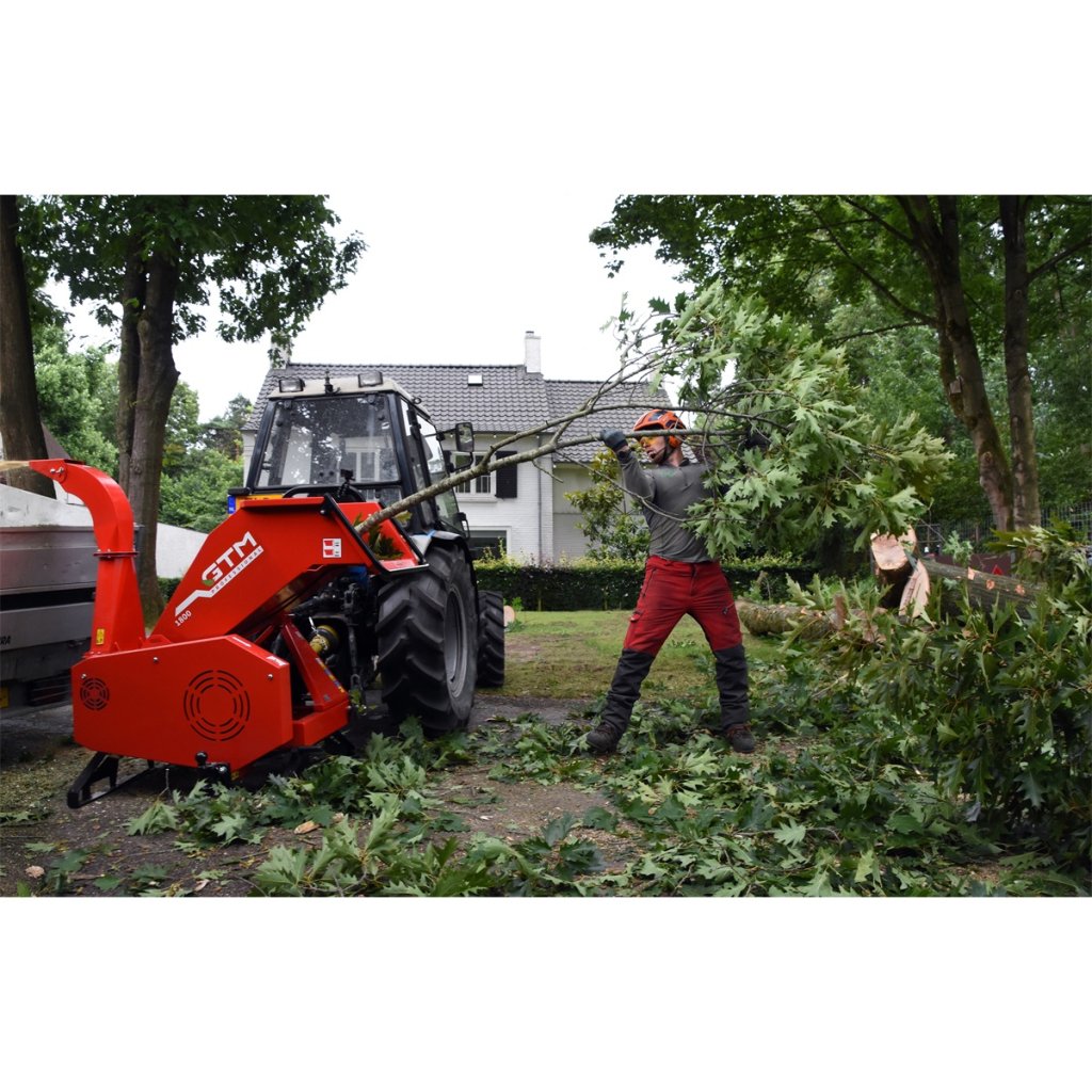 GTS 1800 PTO - drtič dřeva s pohonem na hřídelGTS 1800 PTO je kompaktní drtič se skvělým výkonem. Srdcem stroje je, jako u jiných drtičů GTM, velký buben, na kterém jsou připevněny nože, ze speciální odolné slitiny. Tento systém je velmi účinný a rychlý a můžete s ním drtit čerstvé větve o průměru až 14 cm. Větve jsou systémem vtahovány automaticky a štěpky jsou vyhazovány otočným výhozovým tunelem s nastavitelným deflektorem do vozíku nebo kontejneru. Drtič se může připojit za jakýkoliv traktor s výkonem motoru od 25 koní a s výstupem na hřídel kategorie 1 a tříbodovým závěsem. Díky rozměrům se celý drtič lehce vejde do jakéhokoliv přívěsného vozíku nebo dodávky. Unikátní bezpečnostní systém drtiče pracuje nezávisle na pohonné jednotce, takže stroj může být připojen za jakýkoliv traktor, nehledě na výrobce nebo rok výroby. Součástí drtiče je i tažné zařízení pro vozík na štěpky.